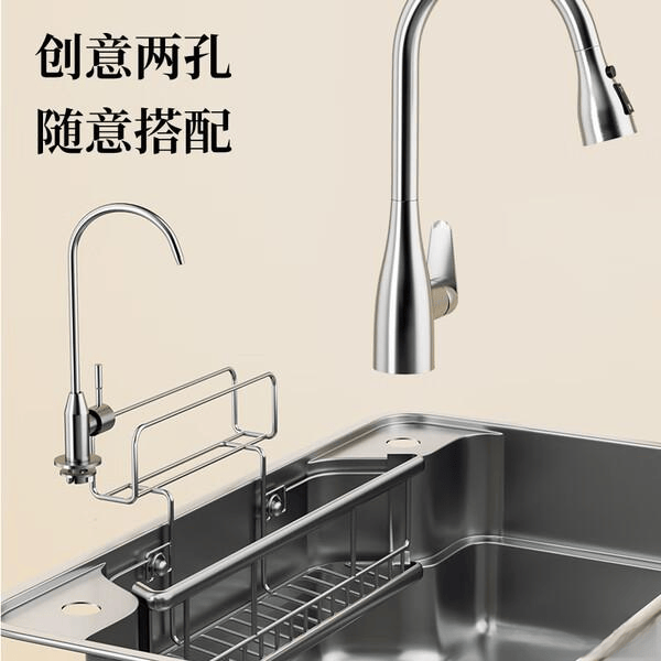 选择这款水槽的理由很简单,它不仅外观简约大方,适合现代家居,还能完美解决厨房中的各种使用问题,提升整体的料理效率。无论是家庭日常烹饪,还是偶尔的聚餐招待,这款水槽都能成为你厨房中的得力助手。同时,优质的不锈钢材料质地,让你的厨房用品更安全卫生,呵护每一位家人的健康。